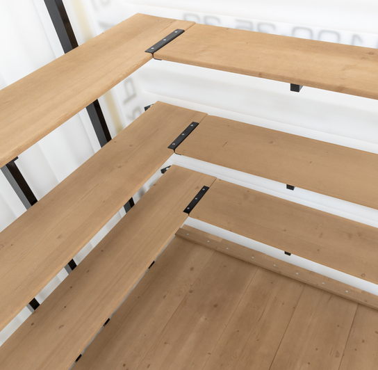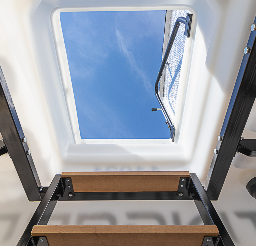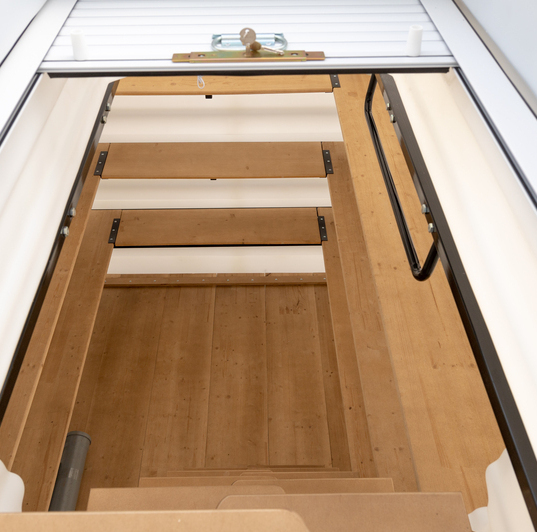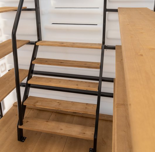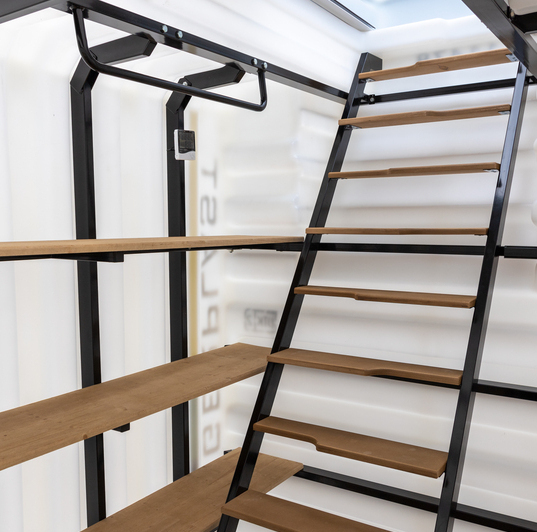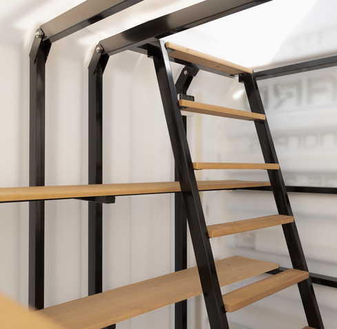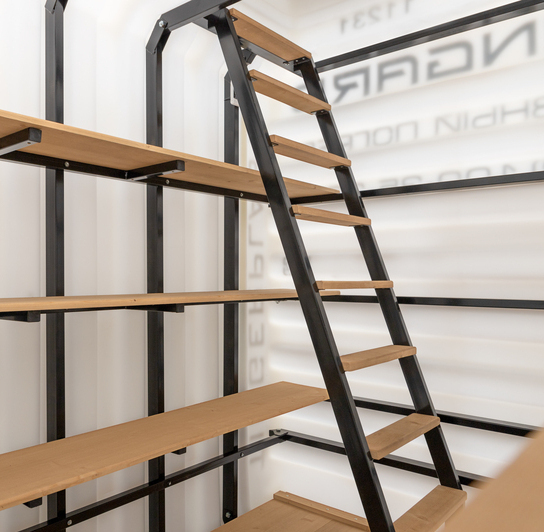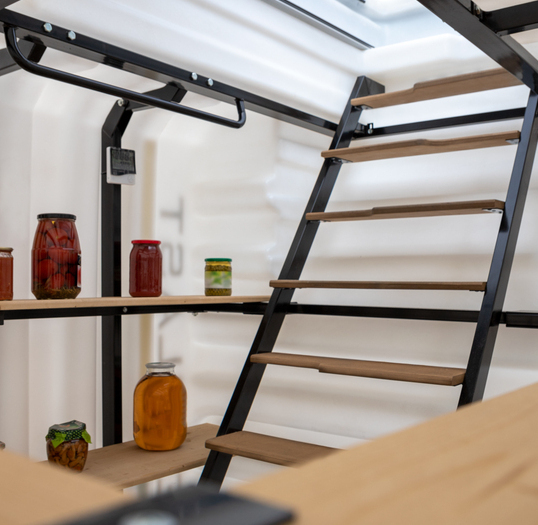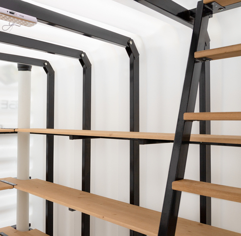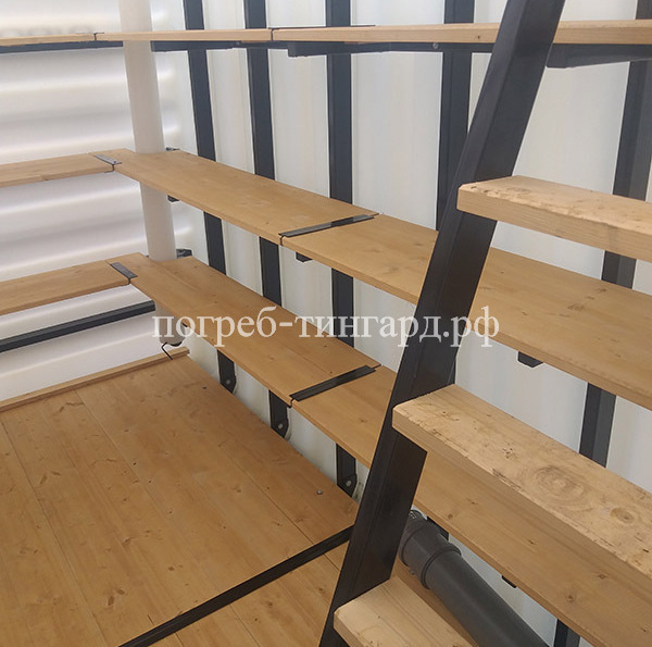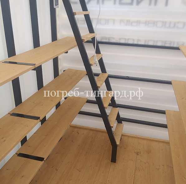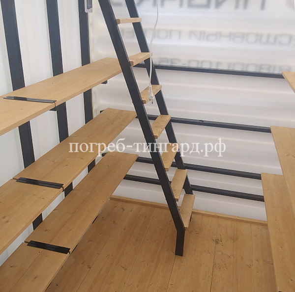 Деревянный пол Деревянные полки Лестница (металл) Встроенное освещение Вентиляция Метеостанция Металлический каркас |
