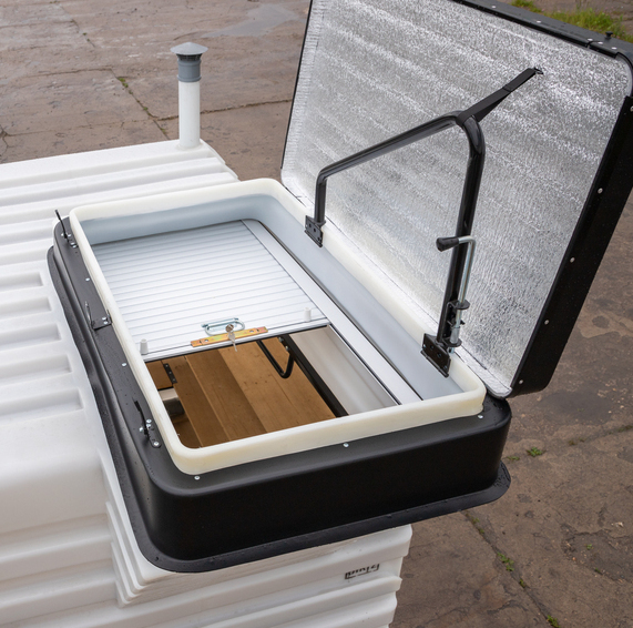 | Длина: 1,9 метра Ширина: 1,9 метра Высота: 2,7 метра Вход: 0,96 х 0,67 метра Объём: 7500 литров Вес: 600 килограмм Срок службы: >100 лет |